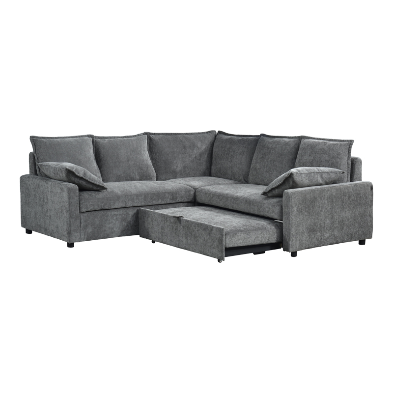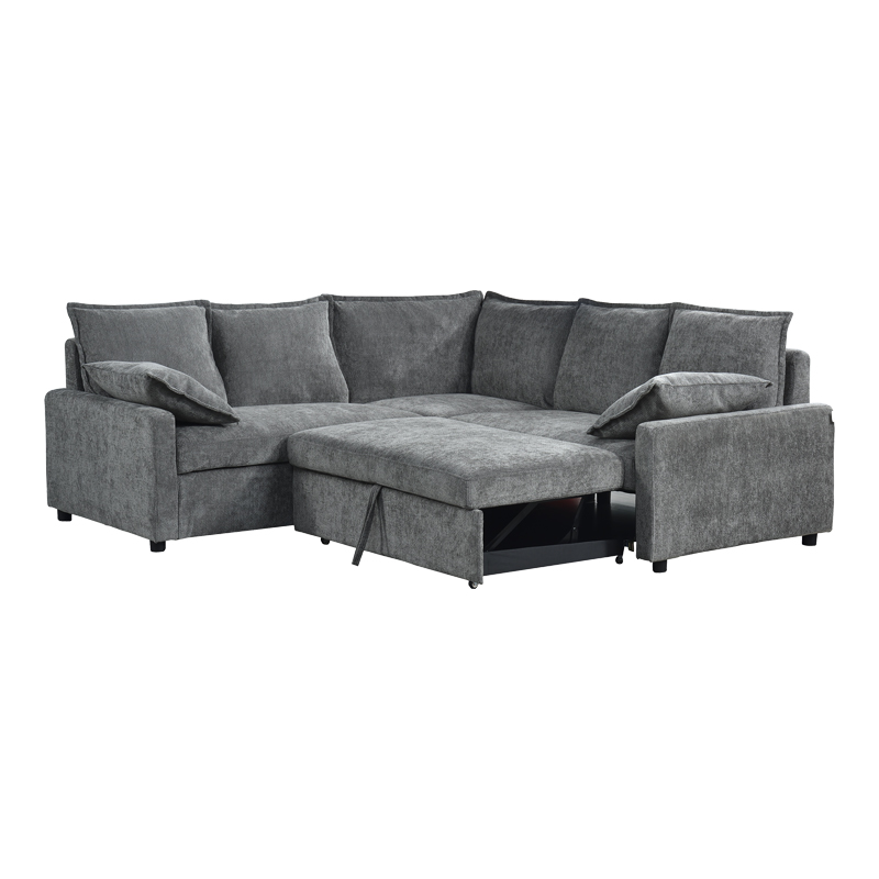 Γωνιακός καναπές κρεβάτι Lounivo pakoworld ύφασμα ανθρακί 215x215x84εκ