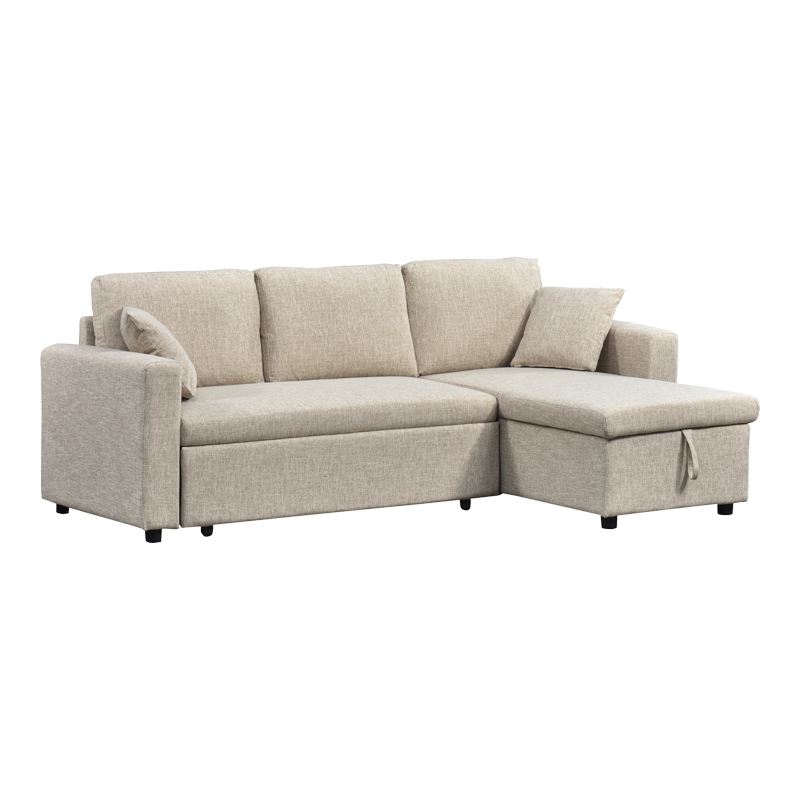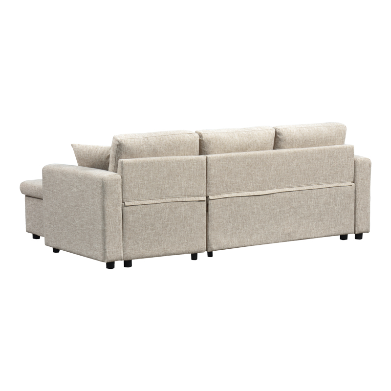 Γωνιακός αναστρέψιμος καναπές κρεβάτι Kamore pakoworld με αποθηκευτικό χώρο ύφασμα μπεζ 223x146x85εκ