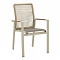 Πολυθρόνα Aegean pakoworld στοιβαζόμενη -teak- αλουμίνιο και μόκα textline με pe σχοινί μπεζ 56,5x58x91εκ