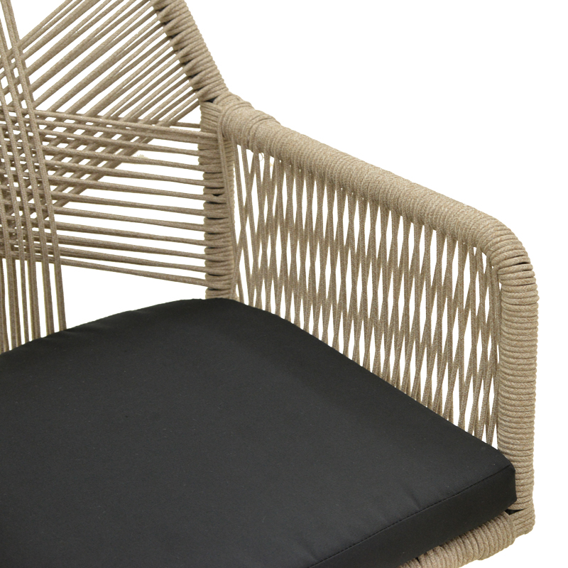 Πολυθρόνα Andros pakoworld αλουμίνιο σε μαύρη- pe σχοινί μπεζ 57x61x84,5εκ