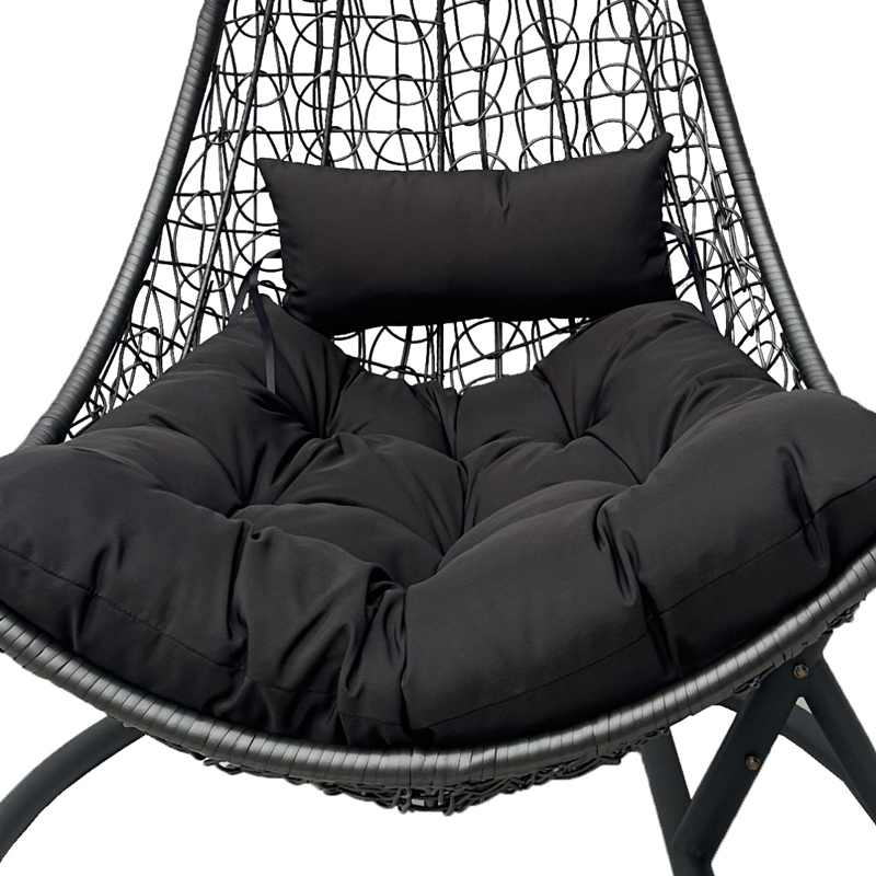 Κούνια φωλιά με βάση Soleil pakoworld μέταλλο ανθρακί- pe rattan ανθρακί με γκρι μαξιλάρι 120x95x195εκ