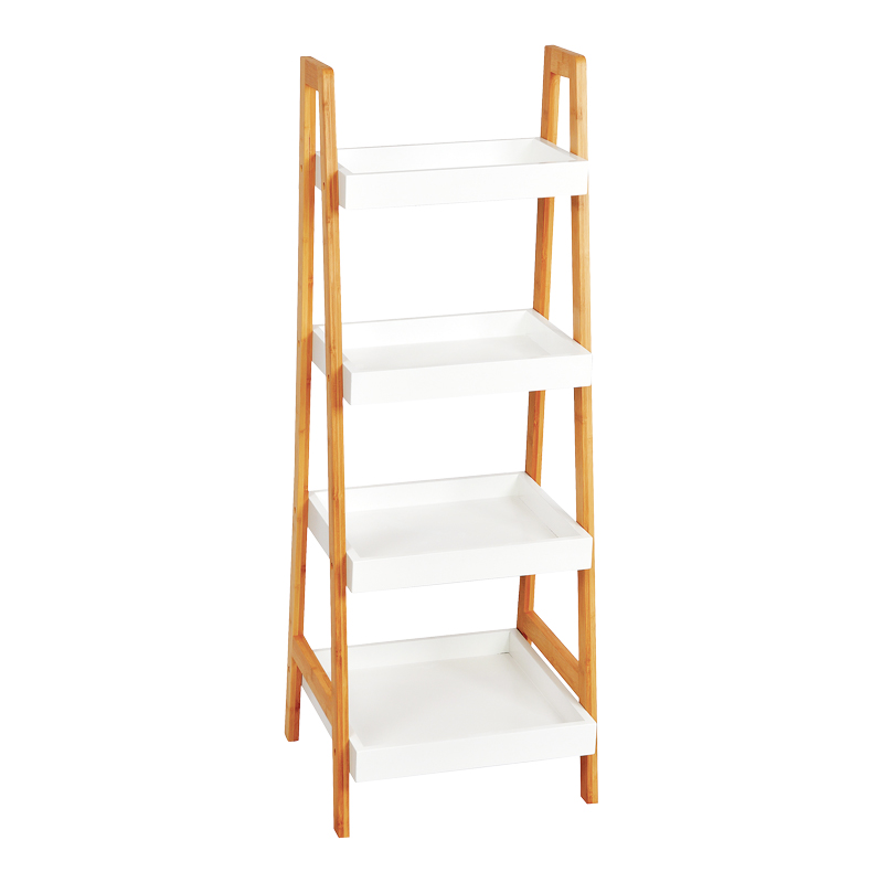 Ραφιέρα δαπέδου Leby pakoworld μπαμπού-mdf σε λευκή-φυσική απόχρωση 35x34x98εκ