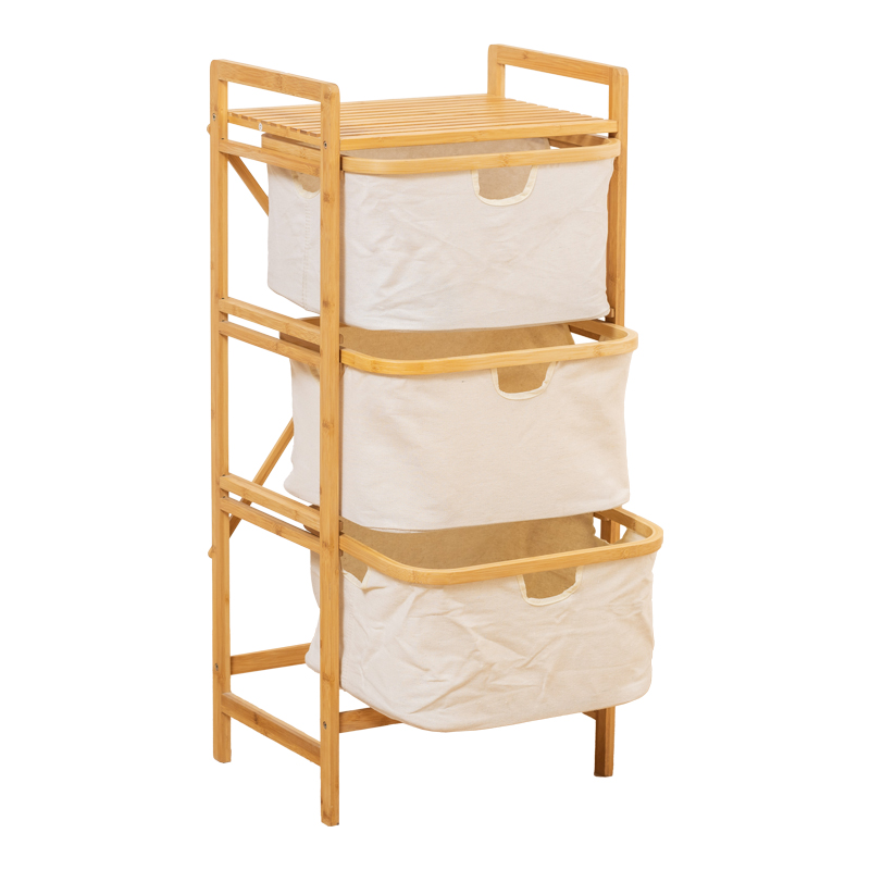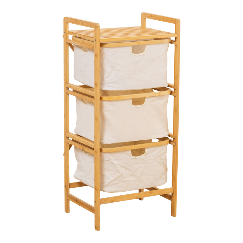 Ραφιέρα δαπέδου Hanev pakoworld μπαμπού-ύφασμα σε φυσική-μπεζ απόχρωση 44x33x96εκ