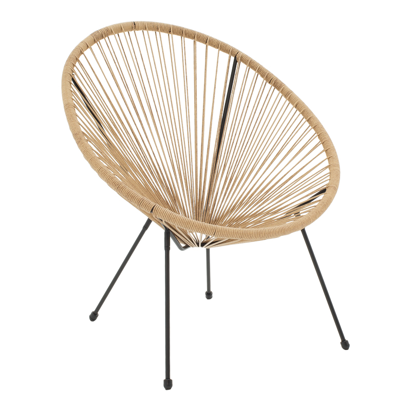 Πολυθρόνα Acapulco pakoworld μεταλλο σε μαύρη-pe rattan σε φυσική απόχρωση 68.5x74.5x84εκ