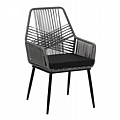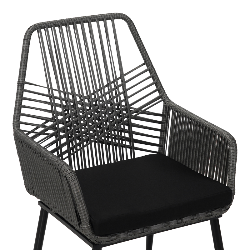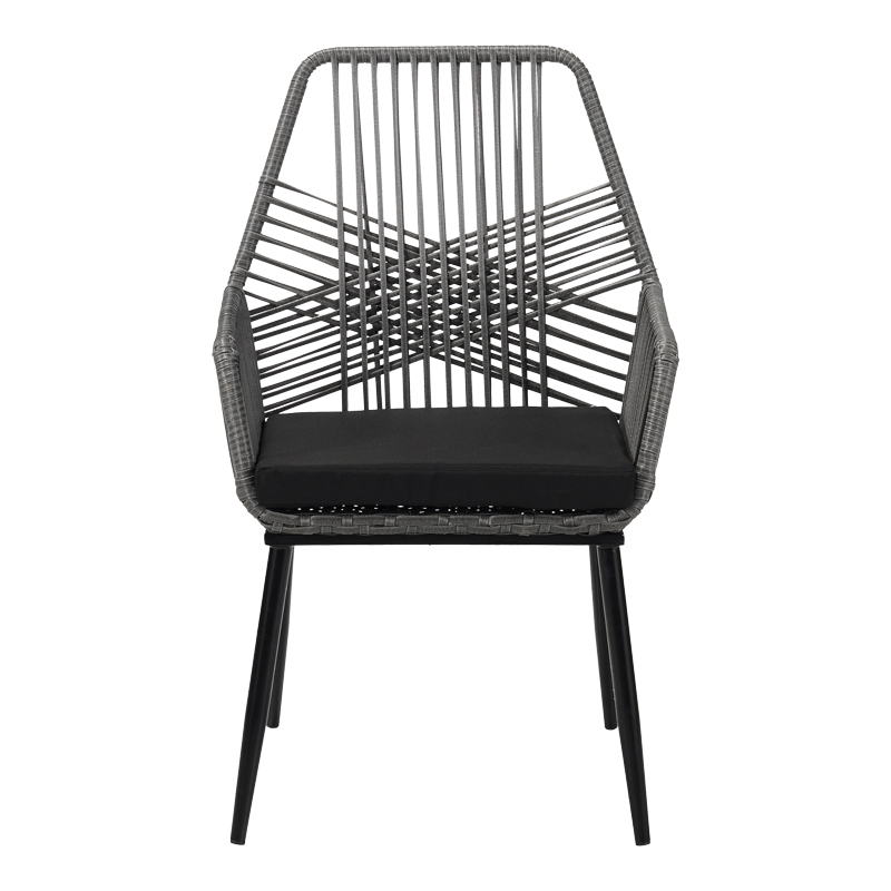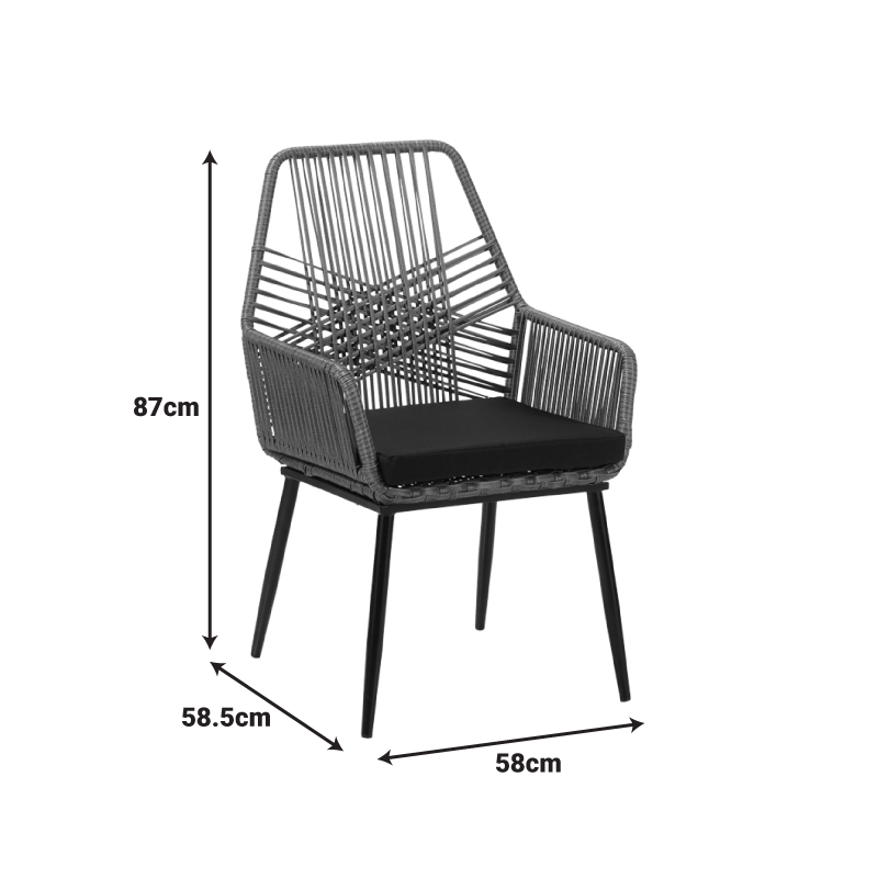 Πολυθρόνα Tanish pakoworld pe rattan σε γκρι απόχρωση με μαύρα μεταλλικά πόδια 58x58.5x87εκ