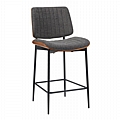 Σκαμπό-μπαρ Kathy pakoworld ξύλο σε καρυδί με γκρι ύφασμα 48.5x52.5x96εκ