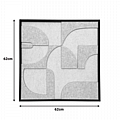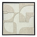 Το εξαιρετικό έργο τέχνης Jeire , διαθέτει μια μοντέρνα, αφηρημένη σύνθεση. Το έργο παρουσιάζει ένα δυναμικό μοτίβο γεωμετρικών και οργανικών σχημάτων σε έντονη ασπρόμαυρη αντίθεση. Τα ανάγλυφα στοιχεία της ανοιχτόχρωμης τσόχας αναδεικνύονται ενάντια στο βαθύ μαύρο φόντο, προσδίδοντας στο κομμάτι μια εντυπωσιακή τρισδιάστατη υφή και οπτικό βάθος. Το σύνολο πλαισιώνεται από ένα λιτό, μαύρο πλαίσιο, τονίζοντας τον μινιμαλιστικό και κομψό χαρακτήρα του.