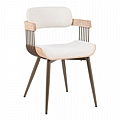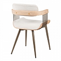 Η πολυθρόνα τραπεζαρίας Cameo συνδυάζει αρμονικά τη σύγχρονη αισθητική με την άνεση. Διαθέτει ένα καμπυλωτό κάθισμα και πλάτη, επενδυμένα με ένα απαλό ύφασμα που προσφέρει εξαιρετική άνεση για παρατεταμένα γεύματα. Οι λεπτομέρειες από φυσικό ξύλο στα μπράτσα προσθέτουν μια ζεστή, οργανική αίσθηση, ενώ οι λεπτές μεταλλικές ράβδοι στην πλάτη προσφέρουν μια ενδιαφέρουσα οπτική αντίθεση και υποστήριξη. Τα μεταλλικά πόδια ολοκληρώνουν την εκλεπτυσμένη εμφάνιση, προσδίδοντας σταθερότητα αλλά και μια αίσθηση ελαφρότητας.