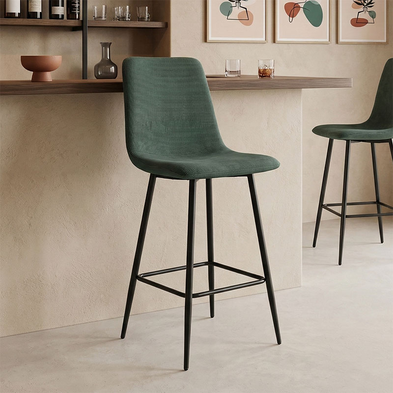 Σκαμπό μπαρ Grato pakoworld ύφασμα κυπαρισσί-πόδι μαύρο μεταλλικό 43.5x55x114εκ