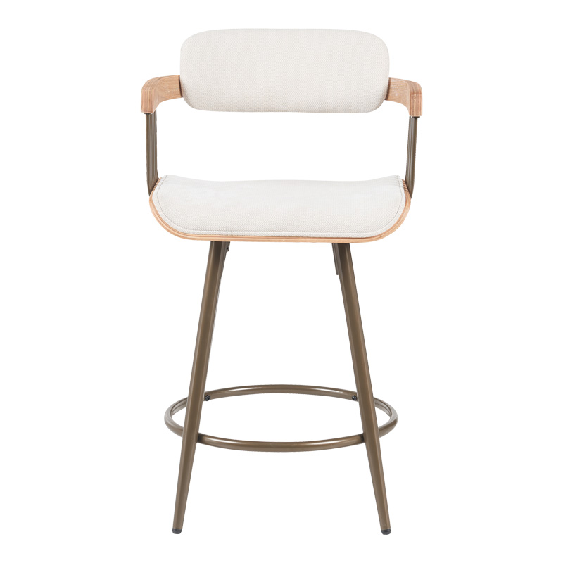 Το σκαμπό μπαρ Cameo συνδυάζει αρμονικά τη σύγχρονη αισθητική με την άνεση. Διαθέτει ένα καμπυλωτό κάθισμα και πλάτη, επενδυμένα με ένα απαλό ύφασμα που προσφέρει εξαιρετική άνεση . Οι λεπτομέρειες από φυσικό ξύλο στα μπράτσα προσθέτουν μια ζεστή, οργανική αίσθηση, ενώ τα μεταλλικά πόδια ολοκληρώνουν την εκλεπτυσμένη εμφάνιση, προσδίδοντας σταθερότητα αλλά και μια αίσθηση ελαφρότητας.