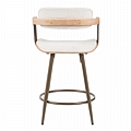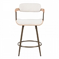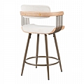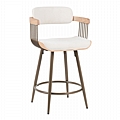 Σκαμπό μπαρ Cameo pakoworld περιστρεφόμενο μέταλλο μπρονζέ-white-wash ξύλο-μπέζ ύφασμα 53x50x93εκ