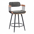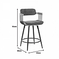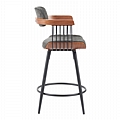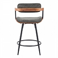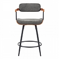 Σκαμπό μπαρ Cameo pakoworld περιστρεφόμενο μέταλλο μαύρο-καρυδί ξύλο-ανθρακί ύφασμα 53x50x93εκ