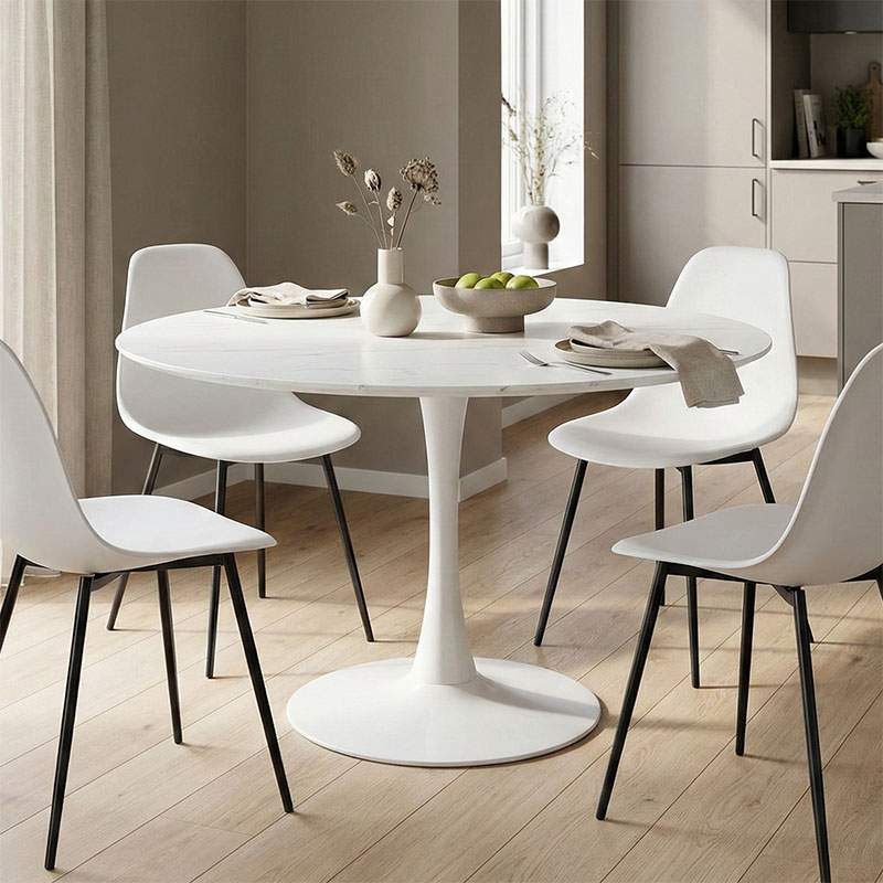 Tραπέζι Balou pakoworld mdf σε λευκή απόχρωση με όψη μαρμάρου Φ120x73εκ