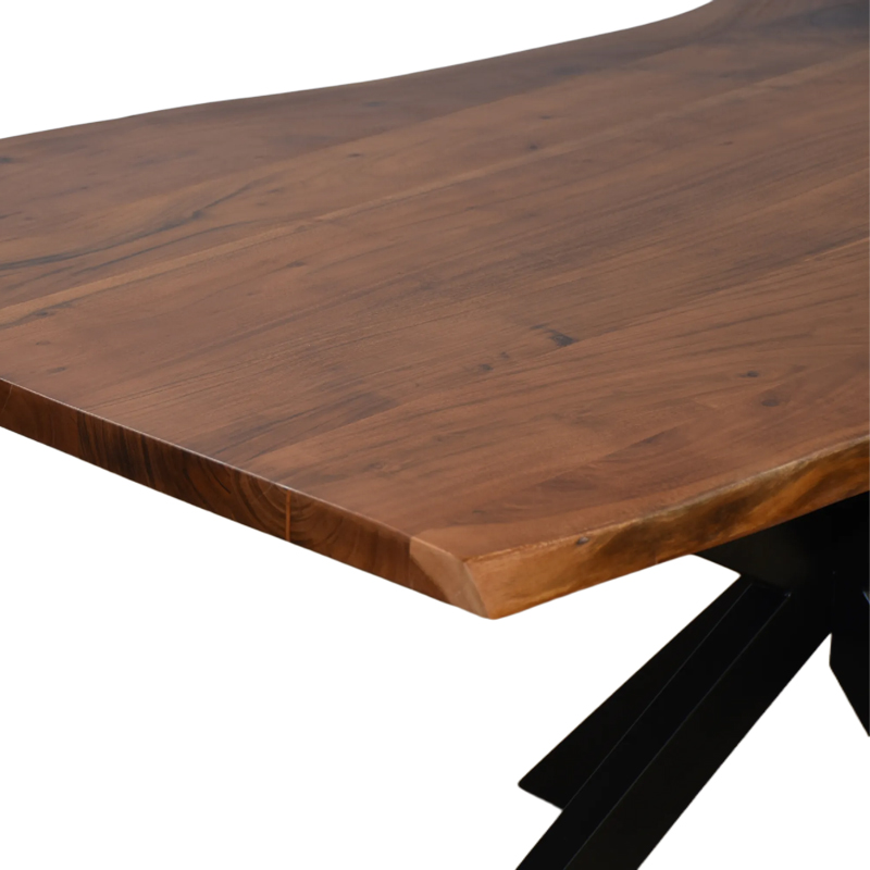 Τραπέζι Lenoua pakoworld μασίφ ξύλο ακακίας πάχους 3.7-4εκ σε καρυδί απόχρωση με μαύρα μεταλλικά πόδια 180x90x76εκ