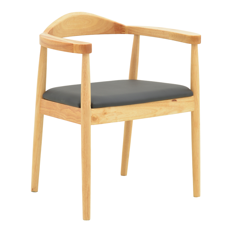 Πολυθρόνα Joube pakoworld rubberwood σε φυσική απόχρωση με μαύρο pu μαξιλάρι 59x48x73εκ
