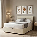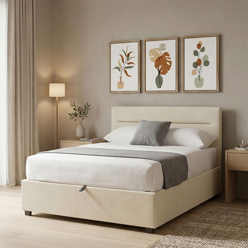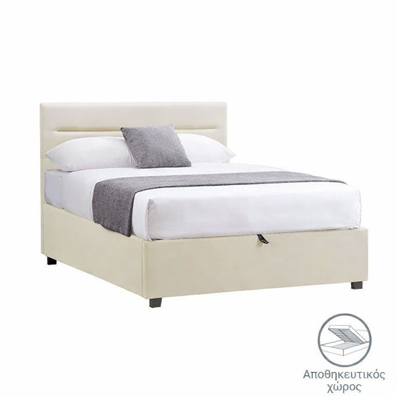 Κρεβάτι Molito pakoworld βελούδο σε εκρού απόχρωση με αποθηκευτικό χώρο120x200εκ