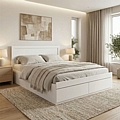 Η σειρά Olympus συνδυάζει την απλότητα με τη λειτουργικότητα, προσφέροντας μια άνετη και πρακτική λύση για το υπνοδωμάτιο. Η λιτή σχεδίαση με τις καθαρές γραμμές δημιουργούν μια αίσθηση ζεστασιάς και ηρεμίας. Η ενσωματωμένη αποθηκευτική βάση προσφέρει επιπλέον χώρο για την οργάνωση των προσωπικών αντικειμένων, καθιστώντας το ιδανικό και τη κρεβατοκάμαρά σας.