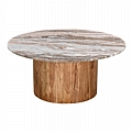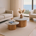Τραπέζι σαλονιού Sergy pakoworld σετ 2 τμχ μασίφ ξύλο ακακίας σε φυσική απόχρωση με επιφάνεια μαρμάρου