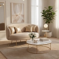 Καναπές διθέσιος Rony pakoworld βελούδο μπεζ-πόδι χρυσό μέταλλο 135x75x85εκ