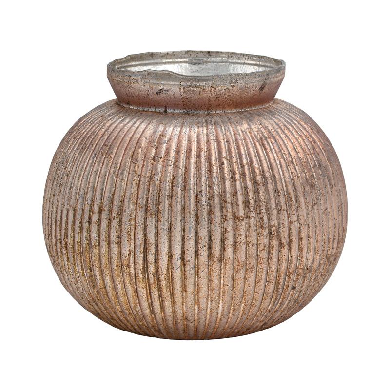 ΓΥΑΛΙΝΟ ΒΑΖΟ Fylliana FL1224 ΡΟΖ ΜΕ ΜΕΤΑΛΛΙΚΟ ΦΙΝΙΡΙΣΜΑ 20x17εκ