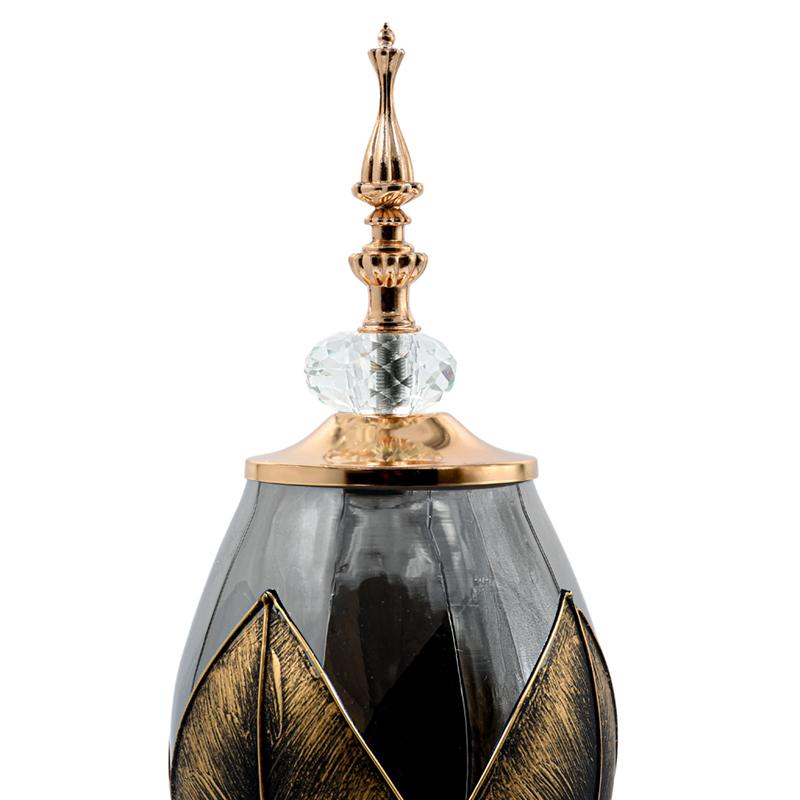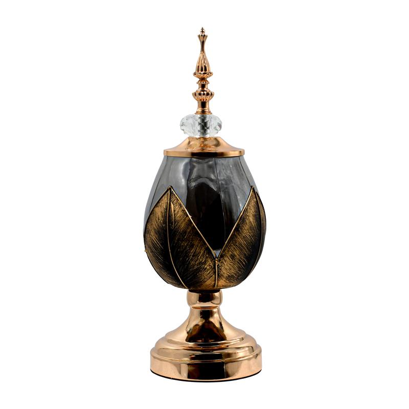 ΓΥΑΛΙΝΟ ΒΑΖΟ ΜΕ ΚΑΠΑΚΙ ΚΑΙ ΜΕΤΑΛΛΙΚΟ ΠΟΔΙ Fylliana FL3087 ΜΑΥΡΟ-ΧΡΥΣΟ ΧΡΩΜΑ 14x35εκ
