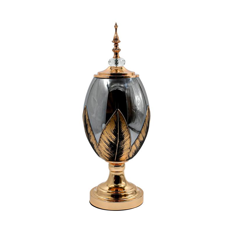 ΓΥΑΛΙΝΟ ΒΑΖΟ ΜΕ ΚΑΠΑΚΙ ΚΑΙ ΜΕΤΑΛΛΙΚΟ ΠΟΔΙ Fylliana FL3087 ΜΑΥΡΟ-ΧΡΥΣΟ ΧΡΩΜΑ 17x47εκ