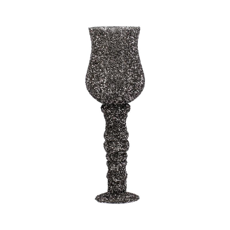 ΓΥΑΛΙΝΟ ΕΠΙΤΡΑΠΕΖΙΟ ΒΑΖΟ ΜΕ ΠΟΔΙ Fylliana Mosaic ΓΚΡΙ ΧΡΩΜΑ 14x40εκ