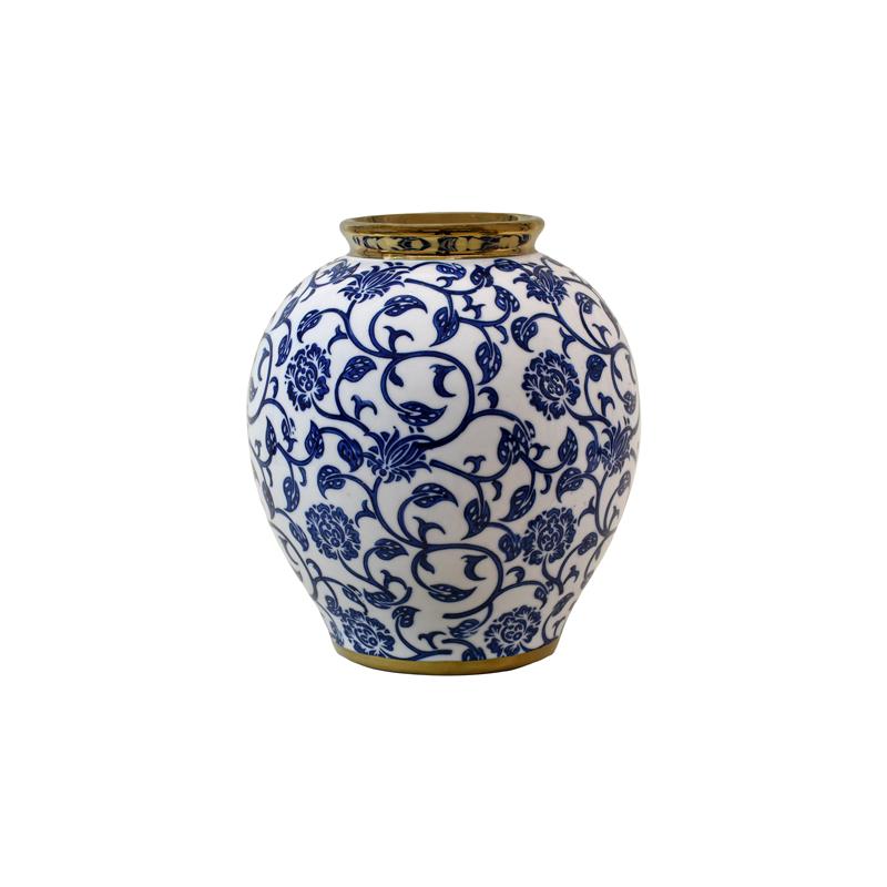 ΚΕΡΑΜΙΚΟ ΒΑΖΟ Fylliana FL22855 ΜΠΛΕ-ΛΕΥΚΟ-ΧΡΥΣΟ ΧΡΩΜΑ 18x21εκ