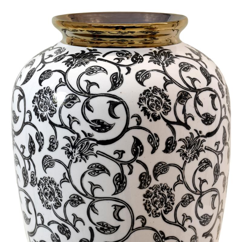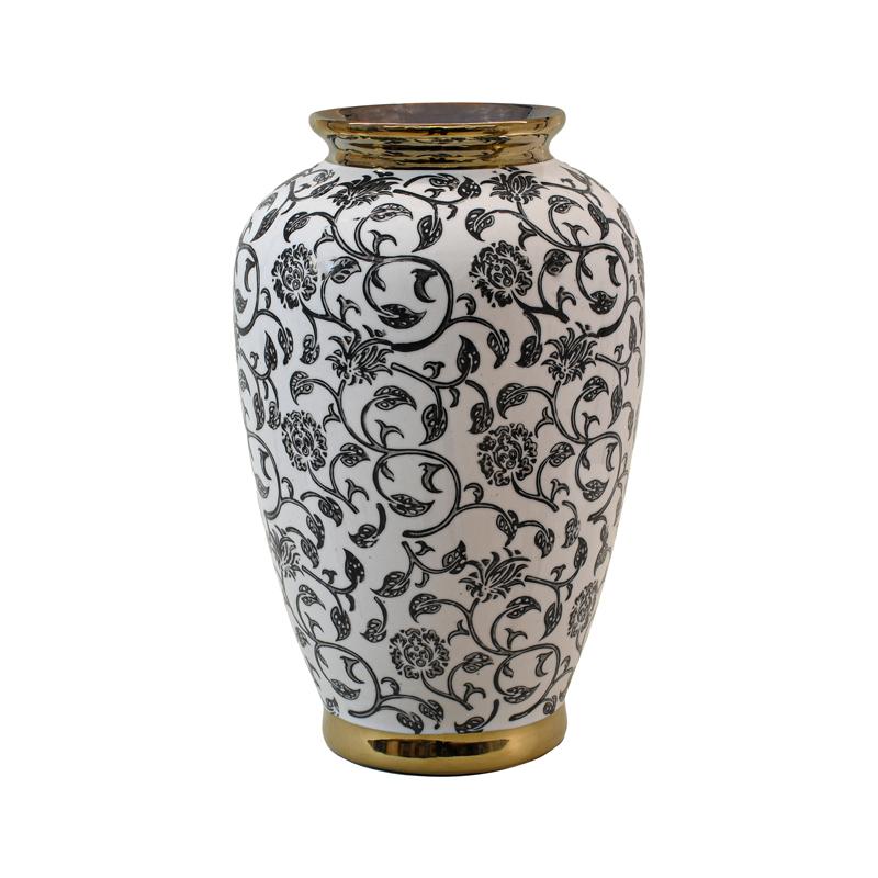 ΚΕΡΑΜΙΚΟ ΒΑΖΟ Fylliana FL22908 ΜΑΥΡΟ-ΛΕΥΚΟ-ΧΡΥΣΟ ΧΡΩΜΑ 19x30εκ