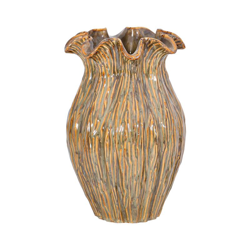ΚΕΡΑΜΙΚΟ ΒΑΖΟ Fylliana FL30006 ΜΠΕΖ-ΓΚΡΙ-ΧΡΥΣΟ ΧΡΩΜΑ 18x28εκ