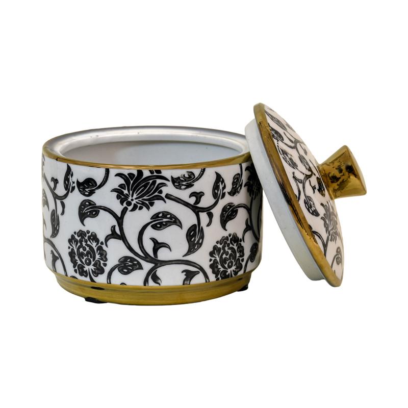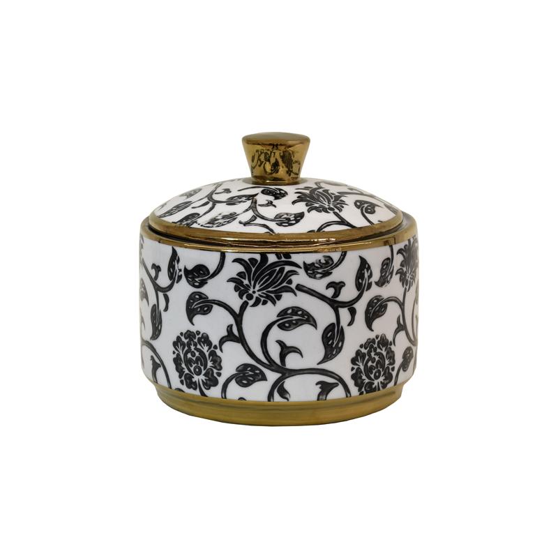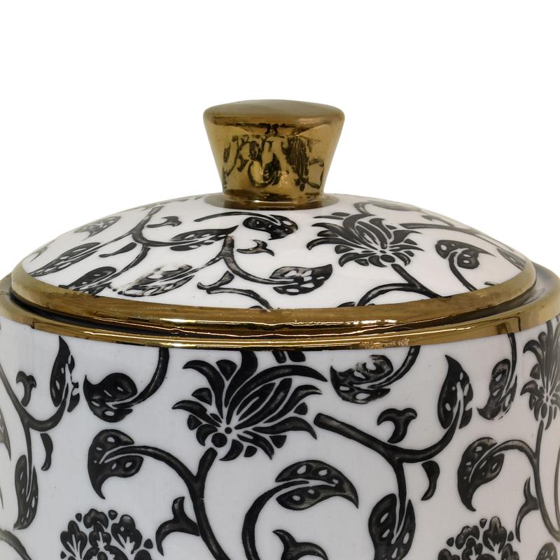 ΚΕΡΑΜΙΚΟ ΔΟΧΕΙΟ ΜΕ ΚΑΠΑΚΙ Fylliana FL22960 ΜΑΥΡΟ-ΛΕΥΚΟ-ΧΡΥΣΟ ΧΡΩΜΑ 13x13εκ