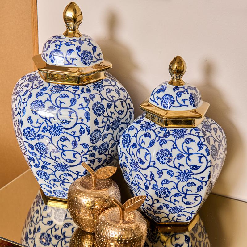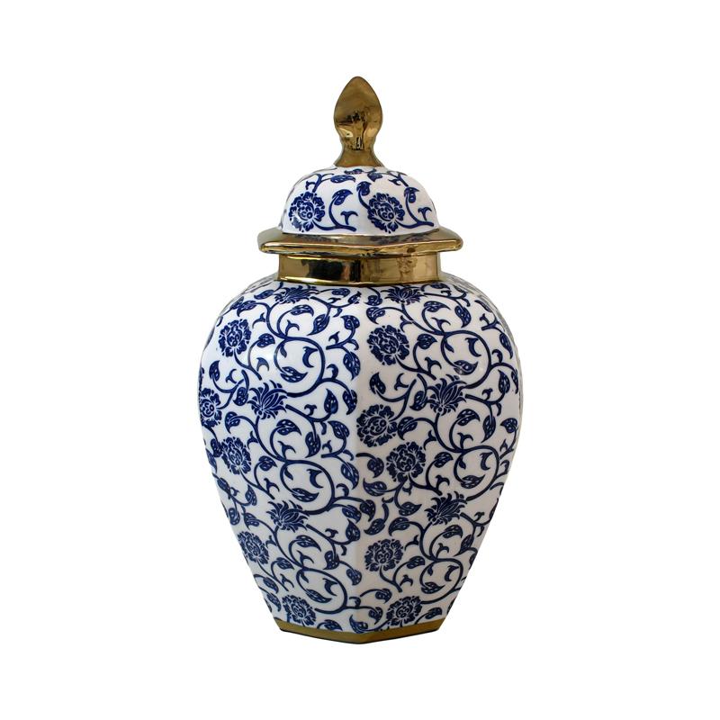 ΚΕΡΑΜΙΚΟ ΒΑΖΟ Fylliana FL22424 ΜΠΛΕ-ΛΕΥΚΟ-ΧΡΥΣΟ ΧΡΩΜΑ 26x39εκ