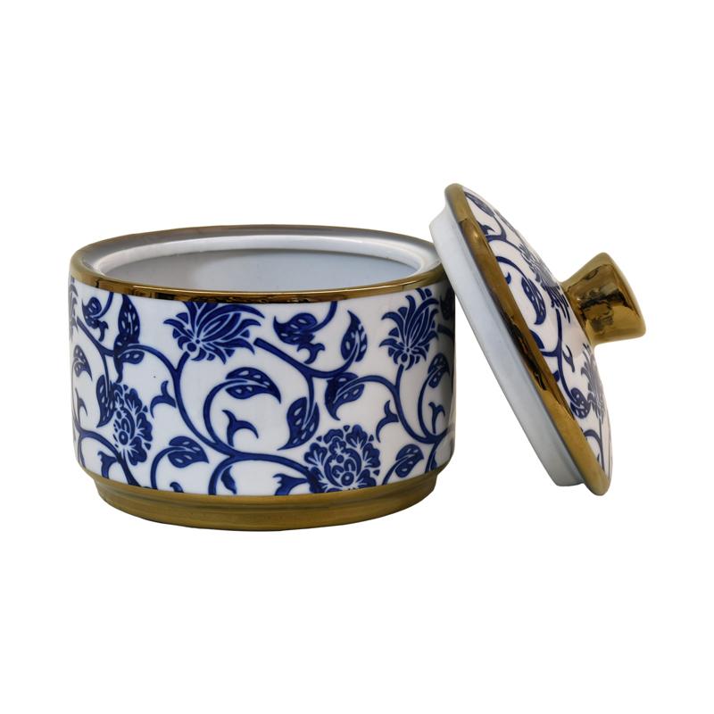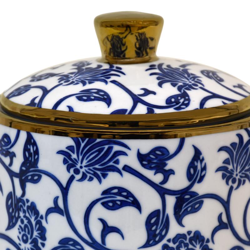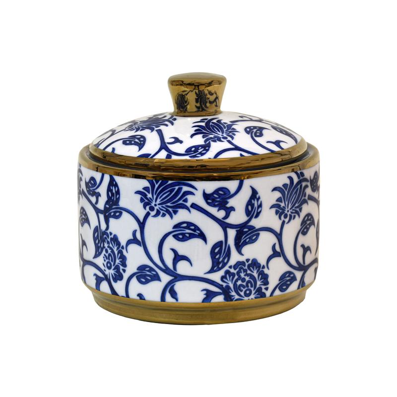 ΚΕΡΑΜΙΚΟ ΔΟΧΕΙΟ ΜΕ ΚΑΠΑΚΙ Fylliana FL22960 ΜΠΛΕ-ΛΕΥΚΟ-ΧΡΥΣΟ ΧΡΩΜΑ 13x13εκ