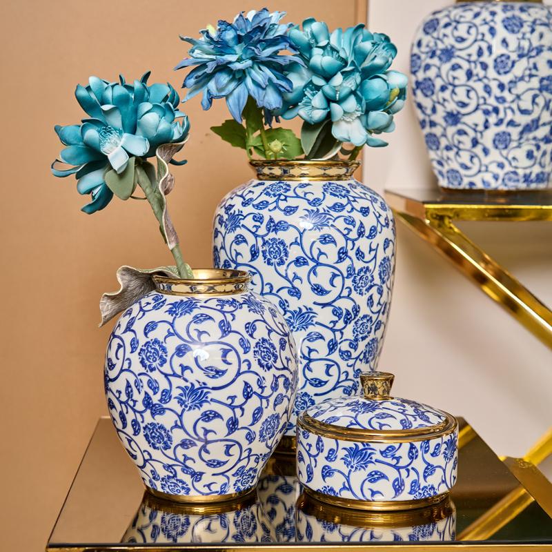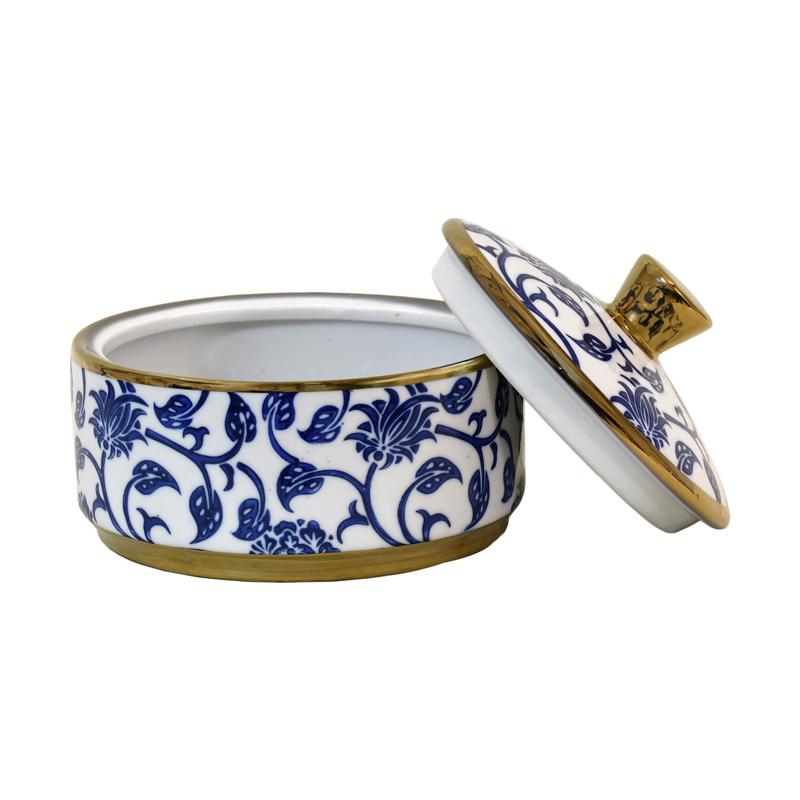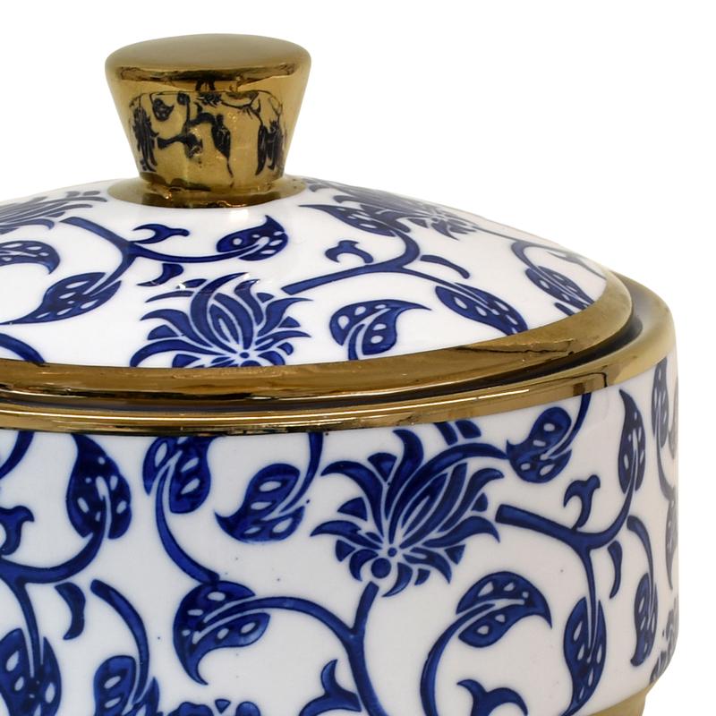 ΚΕΡΑΜΙΚΟ ΔΟΧΕΙΟ ΜΕ ΚΑΠΑΚΙ Fylliana FL22960 ΜΠΛΕ-ΛΕΥΚΟ-ΧΡΥΣΟ ΧΡΩΜΑ 15x11εκ