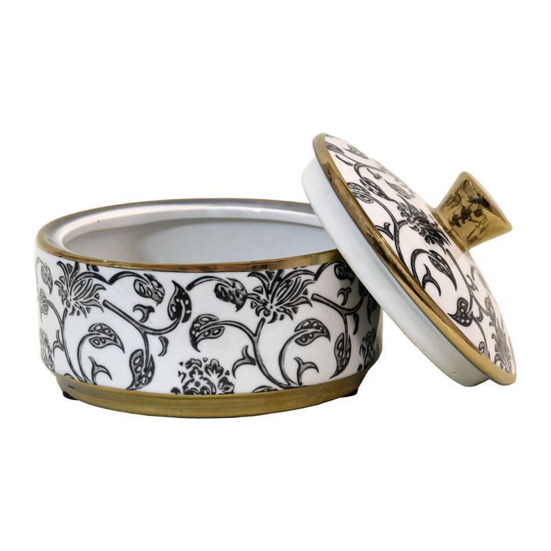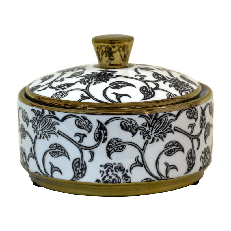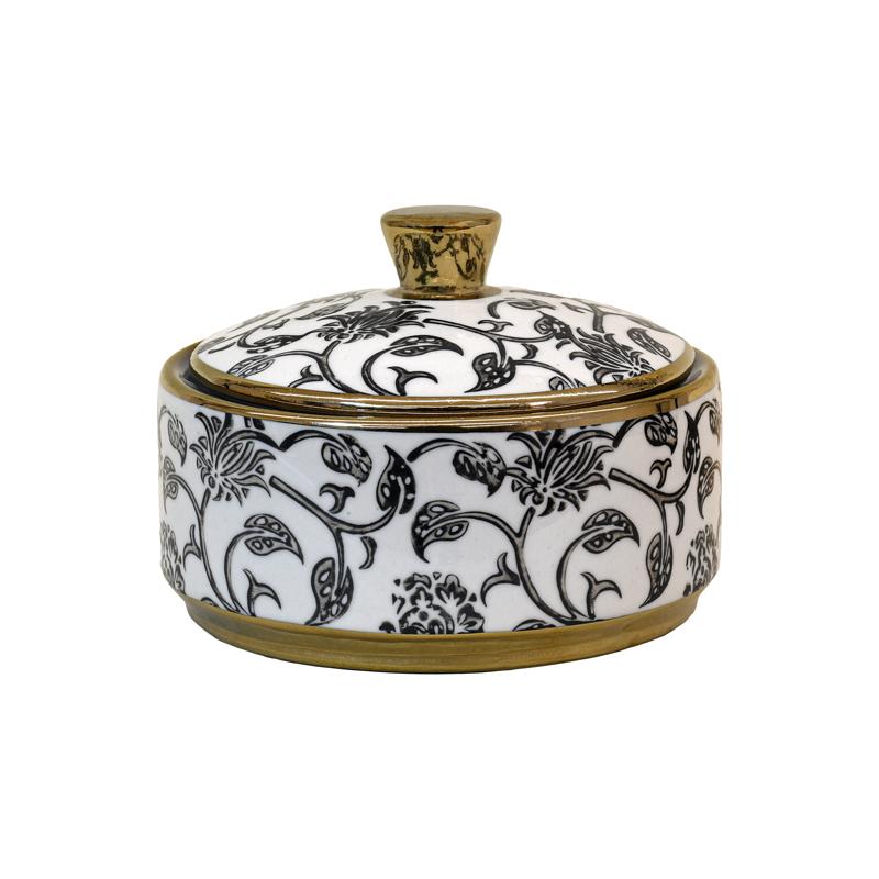 ΚΕΡΑΜΙΚΟ ΔΟΧΕΙΟ ΜΕ ΚΑΠΑΚΙ Fylliana FL22960 ΜΑΥΡΟ-ΛΕΥΚΟ-ΧΡΥΣΟ ΧΡΩΜΑ 15x11εκ