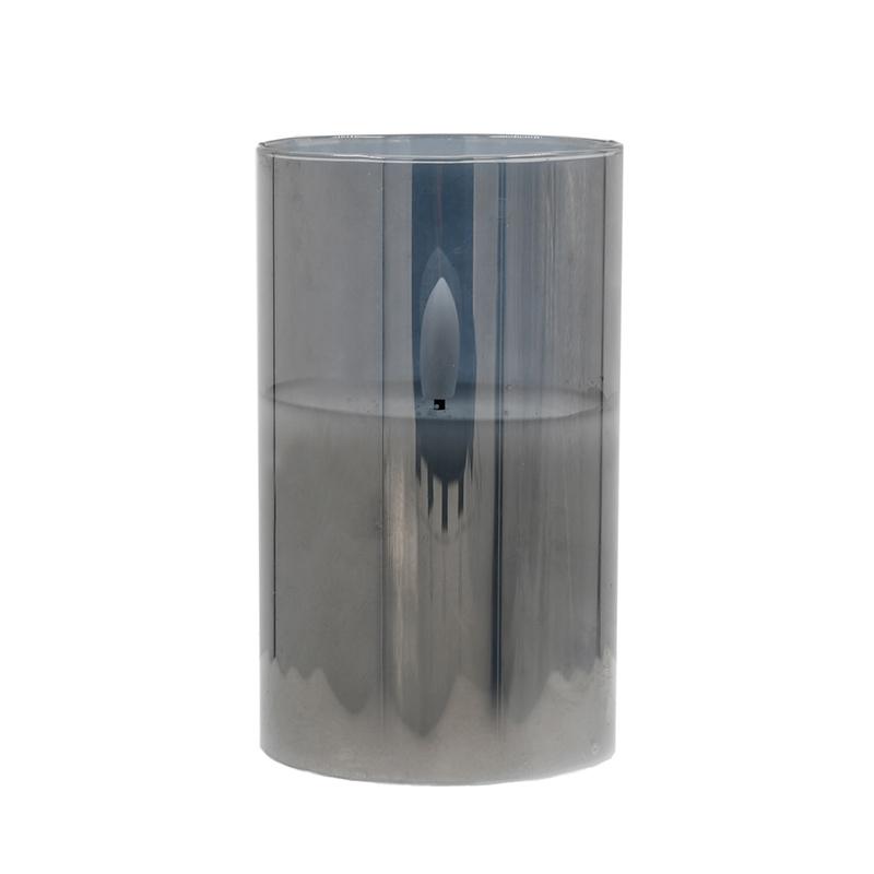 ΔΙΑΚΟΣΜΗΤΙΚΟ LED ΚΕΡΙ ΜΕ ΡΕΑΛΙΣΤΙΚΗ 3D ΦΛΟΓΑ Fylliana FL7513 ΣΕ ΓΥΑΛΙ ΧΡΩΜΑ SMOKY 8x8x13εκ