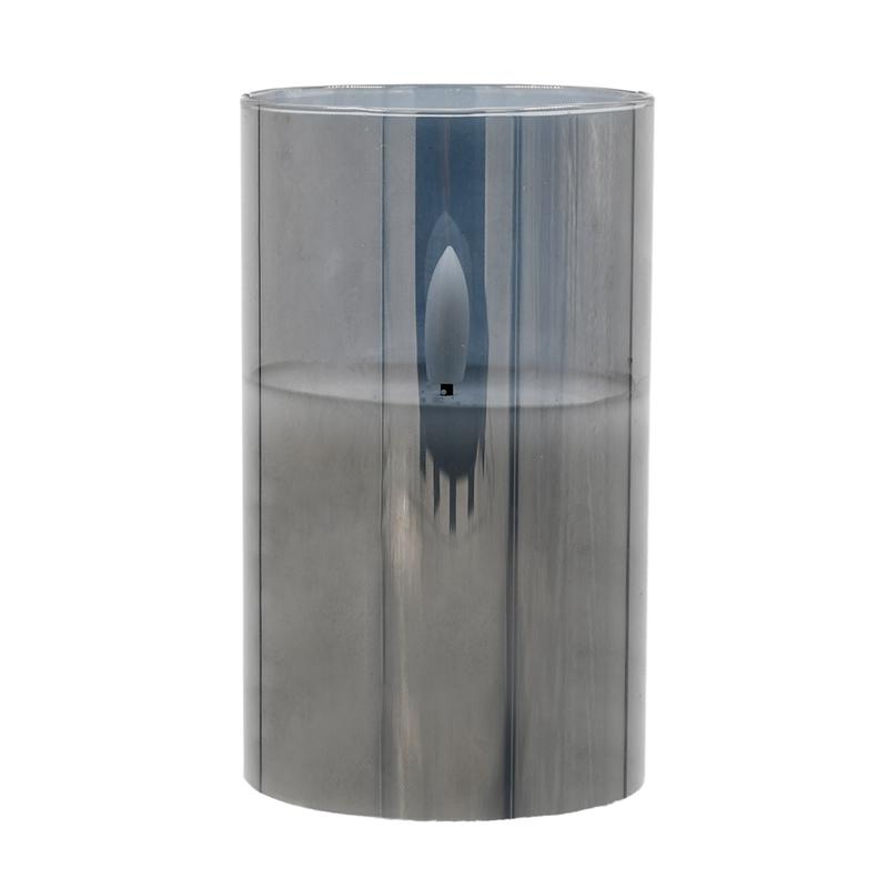 ΔΙΑΚΟΣΜΗΤΙΚΟ LED ΚΕΡΙ ΜΕ ΡΕΑΛΙΣΤΙΚΗ 3D ΦΛΟΓΑ Fylliana FL7515 ΣΕ ΓΥΑΛΙ ΧΡΩΜΑ SMOKY 8x8x15εκ
