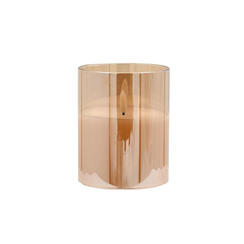 ΔΙΑΚΟΣΜΗΤΙΚΟ LED ΚΕΡΙ ΜΕ ΡΕΑΛΙΣΤΙΚΗ 3D ΦΛΟΓΑ Fylliana FL1013 ΣΕ ΓΥΑΛΙ ΧΡΩΜΑ AMBER 10x10x13εκ