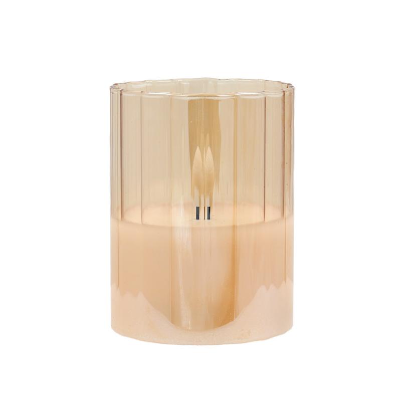 ΔΙΑΚΟΣΜΗΤΙΚΟ LED ΚΕΡΙ ΜΕ ΡΕΑΛΙΣΤΙΚΗ 3D ΦΛΟΓΑ Fylliana FL7513 ΣΕ ΓΥΑΛΙ ΧΡΩΜΑ AMBER 8x8x13εκ