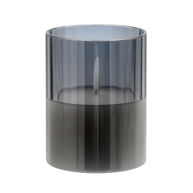 ΔΙΑΚΟΣΜΗΤΙΚΟ LED ΚΕΡΙ ΜΕ ΡΕΑΛΙΣΤΙΚΗ 3D ΦΛΟΓΑ Fylliana FL7515 ΣΕ ΓΥΑΛΙ ΧΡΩΜΑ SMOKY 8x8x15εκ