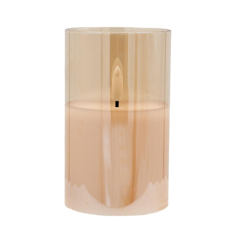 ΔΙΑΚΟΣΜΗΤΙΚΟ LED ΚΕΡΙ ΜΕ ΡΕΑΛΙΣΤΙΚΗ 3D ΦΛΟΓΑ Fylliana FL7515 ΣΕ ΓΥΑΛΙ ΧΡΩΜΑ AMBER 8x8x15εκ