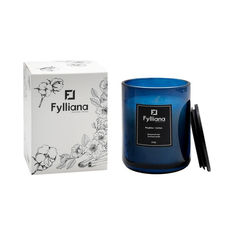 ΑΡΩΜΑΤΙΚΟ ΚΕΡΙ Fylliana FL80105 "ΒΑΜΒΑΚΙ" ΣΕ ΓΥΑΛΙΝΟ ΒΑΖΑΚΙ 220gr ΚΑΙ ΣΥΣΚΕΥΑΣΙΑ ΔΩΡΟΥ ΜΠΛΕ ΧΡΩΜΑ 8x10.5εκ