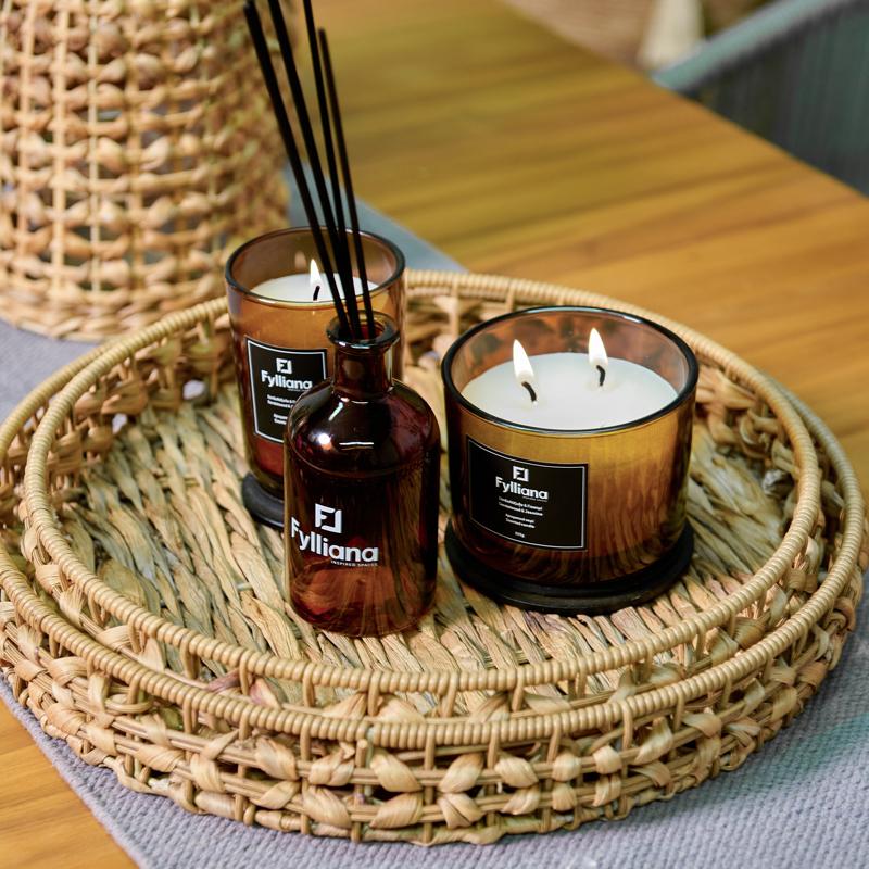 ΑΡΩΜΑΤΙΚΟ ΚΕΡΙ Fylliana FL1180 "ΣΑΝΔΑΛΟΞΥΛΟ & ΓΙΑΣΕΜΙ" ΣΕ ΓΥΑΛΙΝΟ ΒΑΖΑΚΙ 325gr ΚΑΙ ΣΥΣΚΕΥΑΣΙΑ ΔΩΡΟΥ ΚΑΦΕ ΧΡΩΜΑ 8x10.5εκ