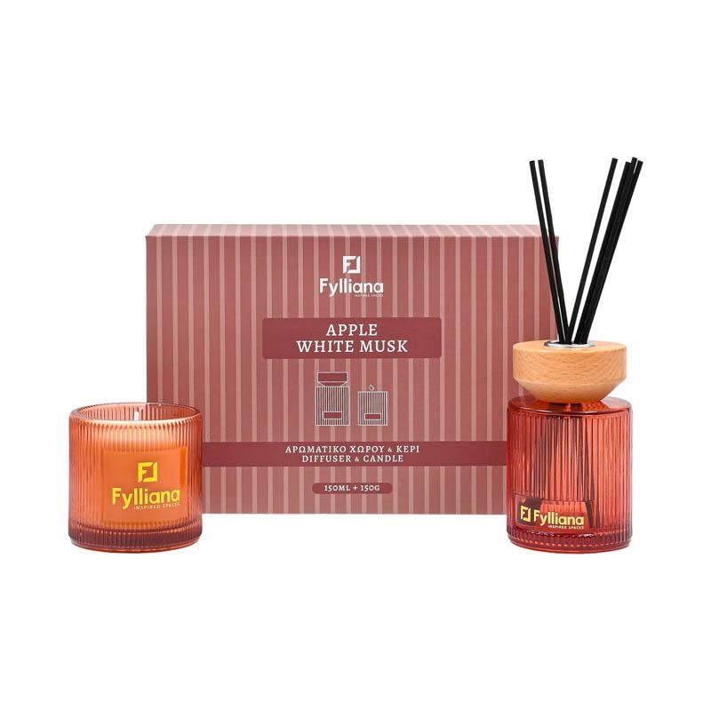 ΑΡΩΜΑΤΙΚΟ ΣΕΤ ΔΩΡΟΥ "Apple white musk " Fylliana FL25161 (Διαχύτης 150ml + Κερί 150g)