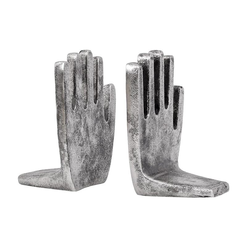 ΣΕΤ 2 ΒΙΒΛΙΟΣΤΑΤΕΣ ΜΕΤΑΛΛΙΚΟΙ "Χέρια" Fylliana FL76638 ΑΣΗΜΙ ΑΝΤΙΚΕ ΧΡΩΜΑ 11x9x15εκ