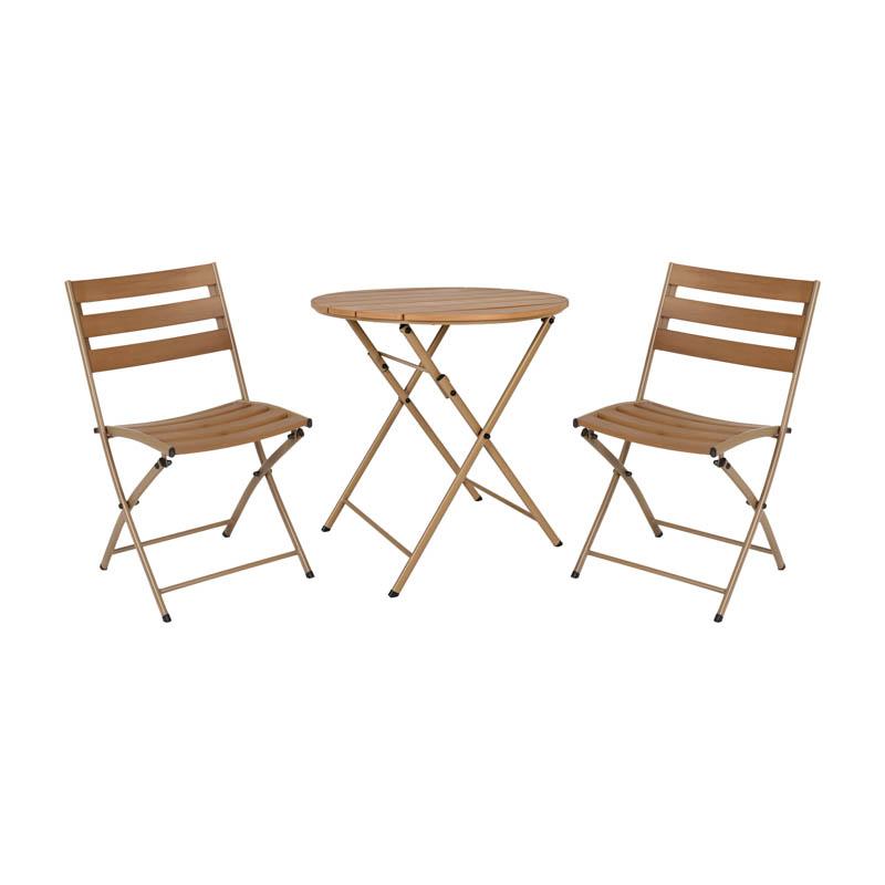 ΣΕΤ BALCONY 3TEM ΣΤΡΟΓΓΥΛΟ Fylliana POLYWOOD & ΑΤΣΑΛΙ ΦΥΣΙΚΟ-ΚΑΦΕ ΧΡΩΜΑ