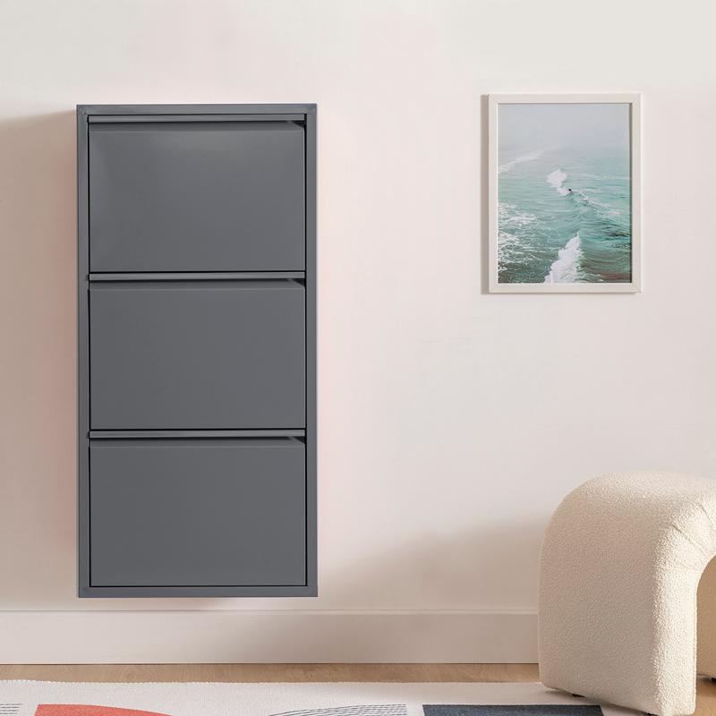 ΜΕΤΑΛΛΙΚΗ ΠΑΠΟΥΤΣΟΘΗΚΗ 3 ΘΕΣΕΩΝ FYLLIANA ΓΚΡΙ ΧΡΩΜΑ 50x15x104εκ
