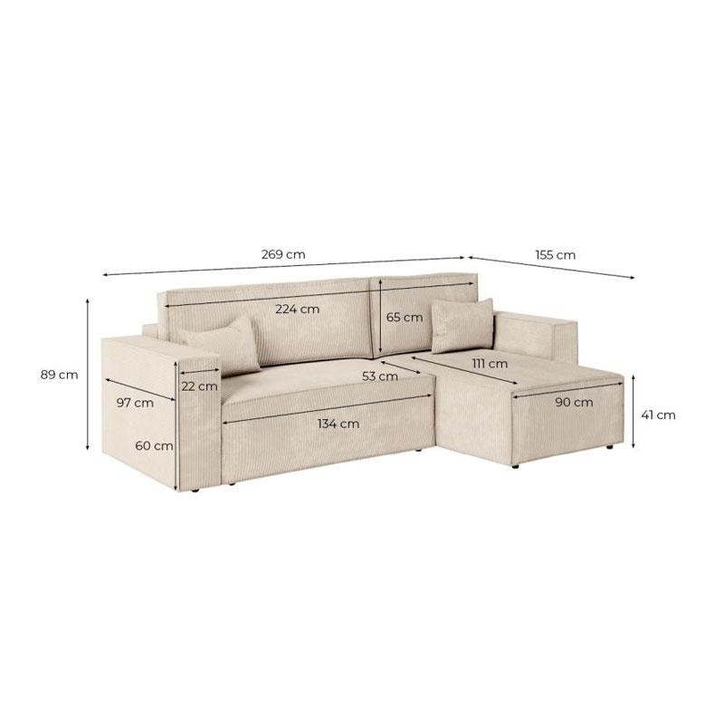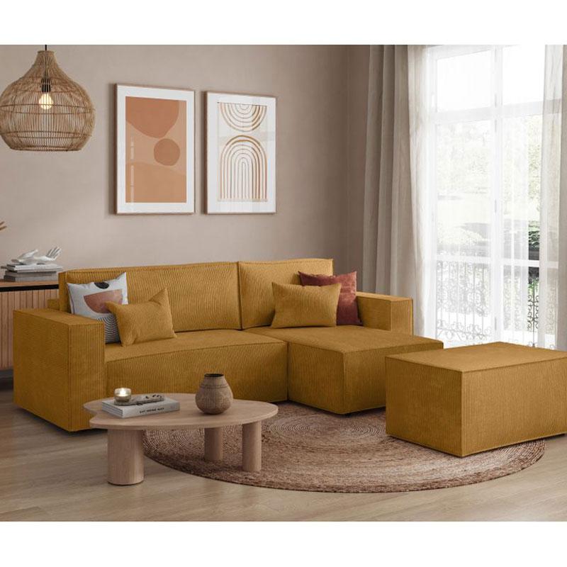 ΚΑΝΑΠΕΣ ΓΩΝΙΑ Fylliana New Isabella ΜΟΥΣΤΑΡΔΙ ΧΡΩΜΑ ΥΦΑΣΜΑΤΟΣ 270x160x90εκ
