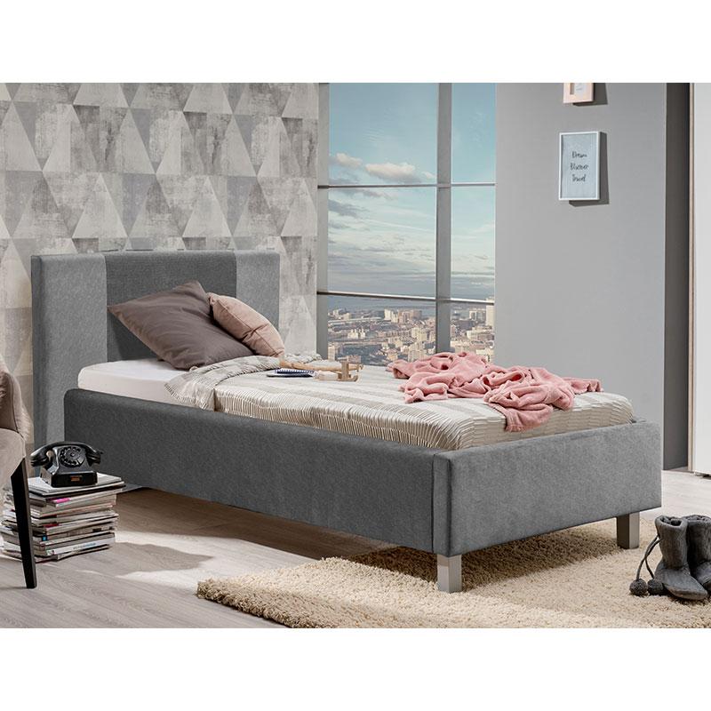 ΚΡΕΒΑΤΙ AOSTA 120 ΣΚΟΥΡΟ ΓΚΡΙ ΧΡΩΜΑ ΥΦΑΣΜΑΤΟΣ 154x217x100εκ