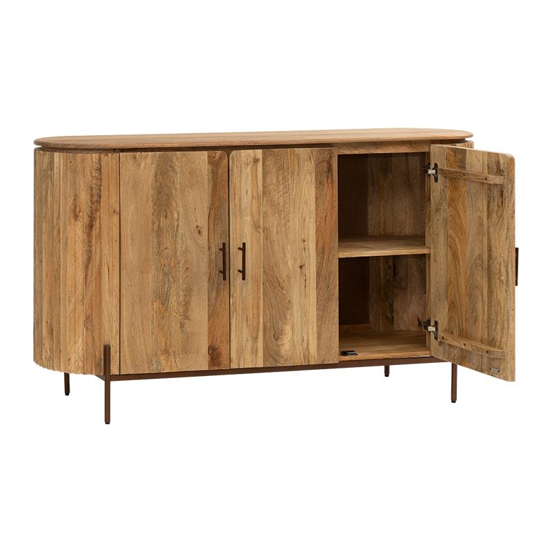 Δώστε στο χώρο σας μια κομψή και μοντέρνα πινελιά με την κομoτα-μπουφέ Fylliana Bhopal. Κατασκευασμένος από υψηλής ποιότητας mango wood και στηριζόμενος σε ανθεκτική βάση από σίδερο, αυτό το έπιπλο συνδυάζει την αντοχή με την εκλεπτυσμένη αισθητική. Το χρώμα Golden Brown αναδεικνύει τη φυσική υφή του ξύλου, προσφέροντας μια ζεστή και φιλόξενη αίσθηση στον χώρο σας.